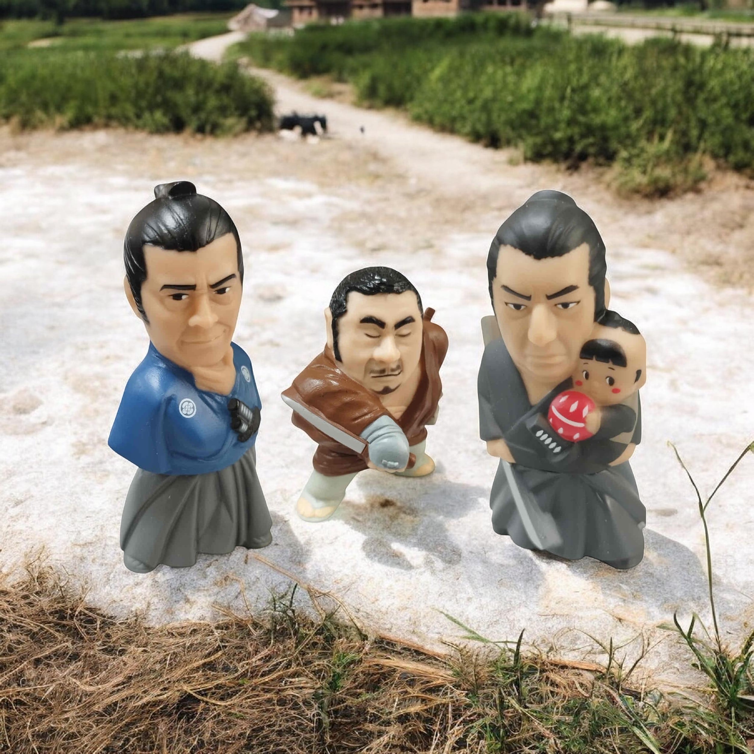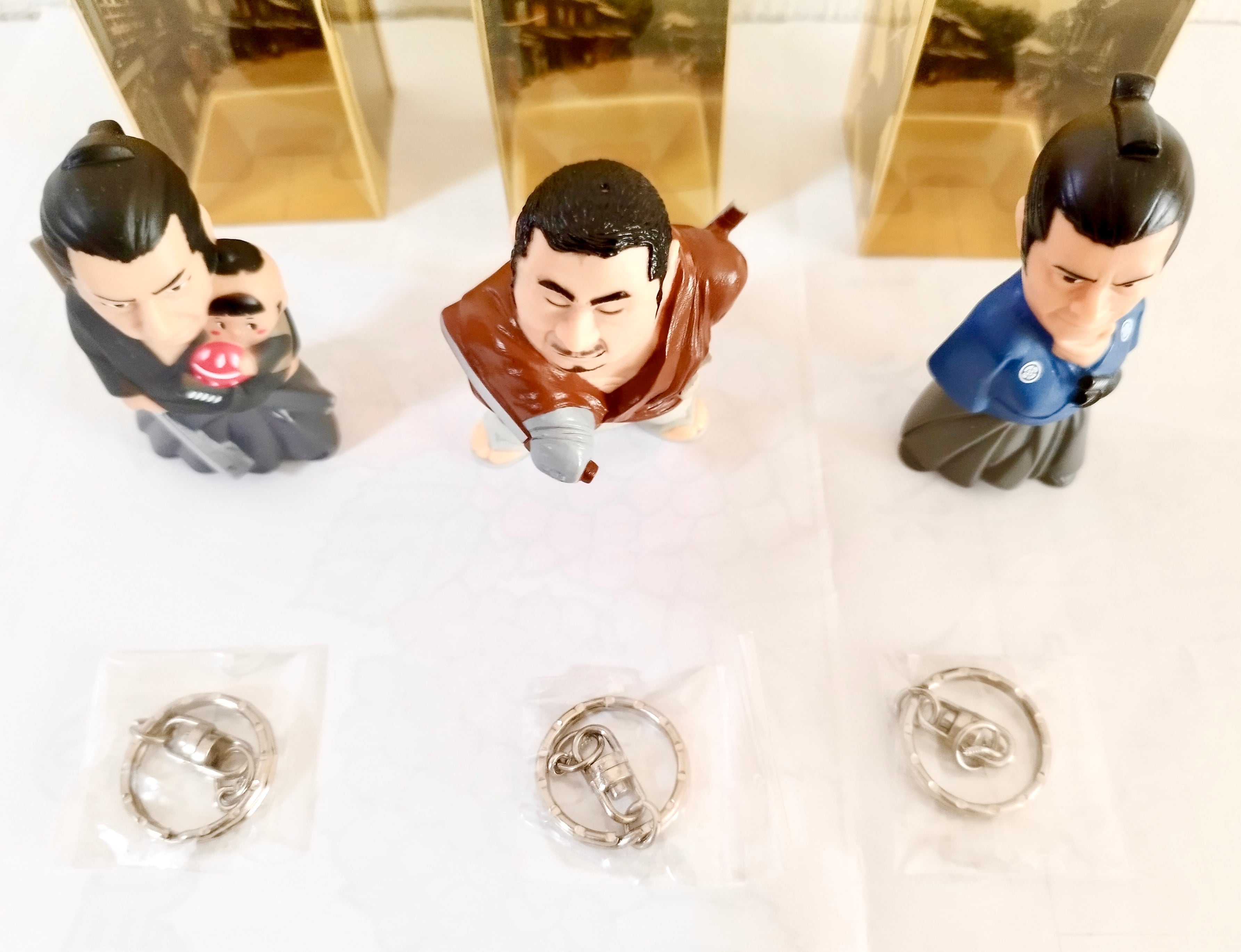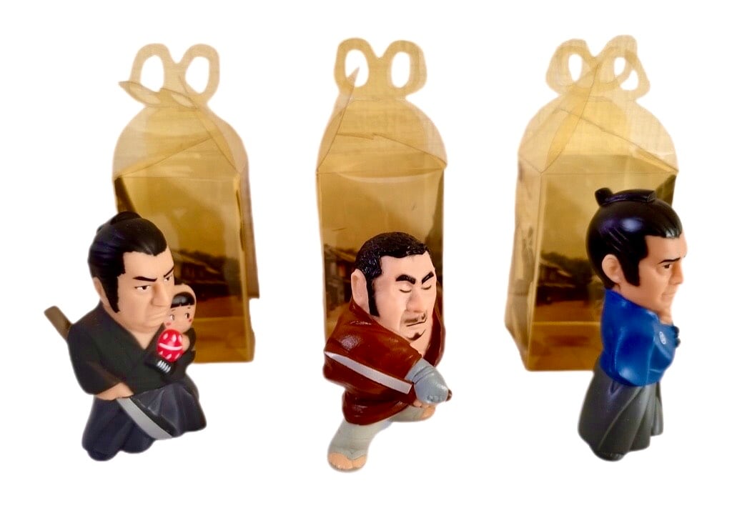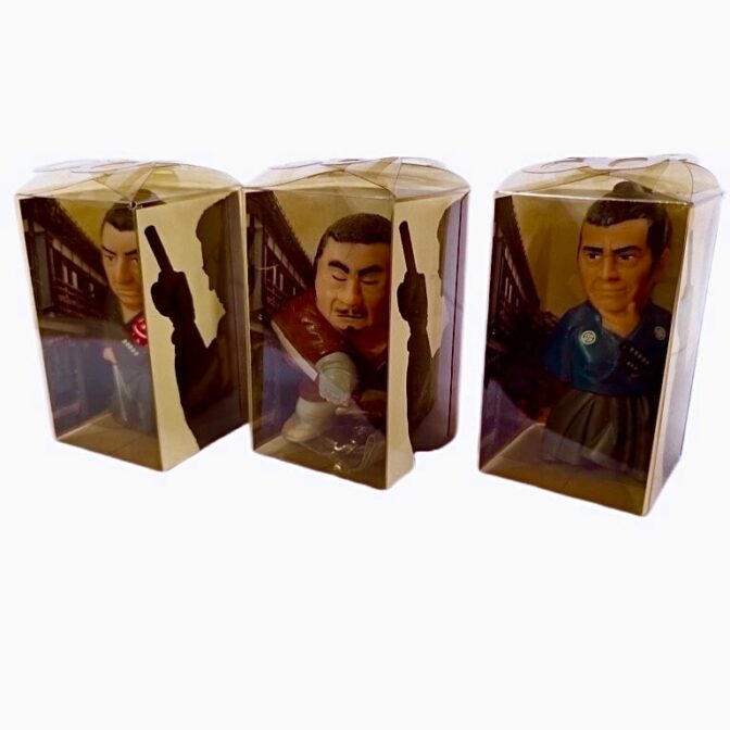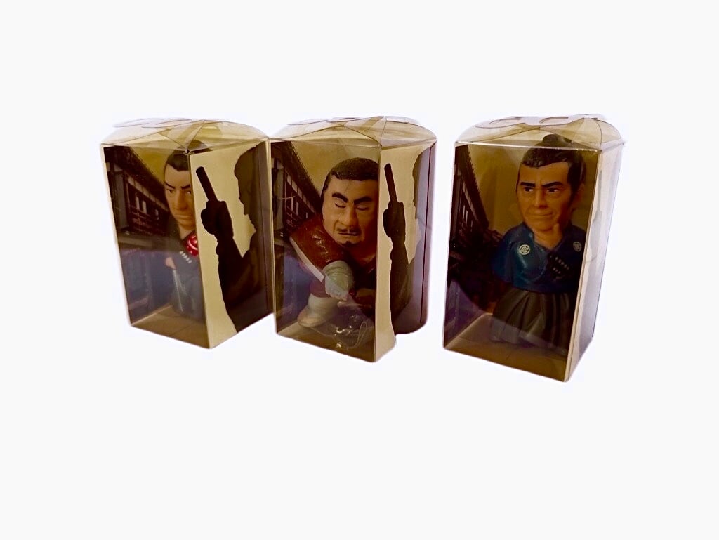 三船氏の椿三十郎、勝氏の座頭市、若山氏の子連れ狼といった各キャラクターの持ち味や風格が見事に再現されており、コレクターにはたまらない逸品です。