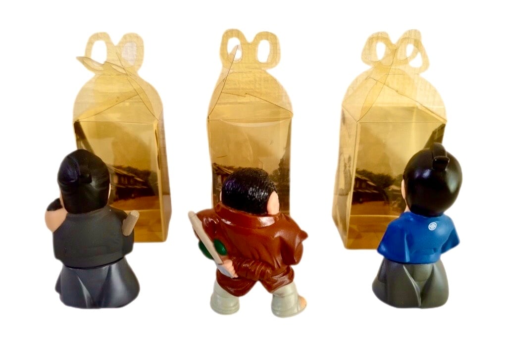三船敏郎氏、勝新太郎氏、若山富三郎氏という往年の時代劇スターのミニフィギュアが1セットになっています。